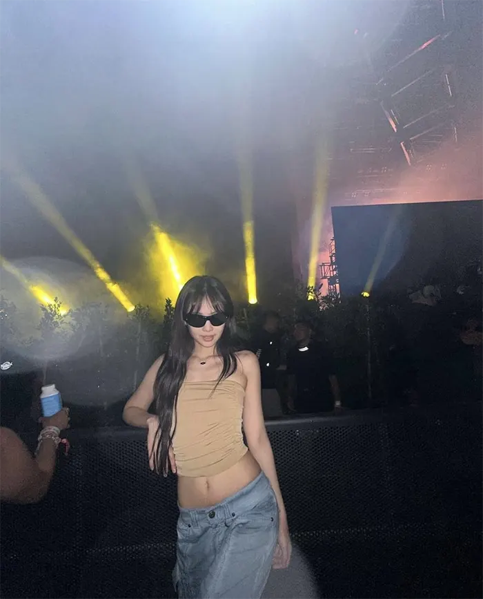 제니는 콘서트 리허설에서 한국 힙합 브랜드 '아웃엑스오'의 베이지 핑크 탱크톱을 입었는데요, 심플한 레터링 디자인과 과감하게 오픈된 뒷모습이 달콤하면서도 매혹적이었답니다!